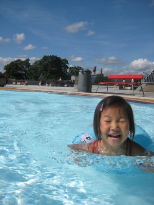 Nå finner jeg det absolutt mest naturlig at hun bruker badetøy når vi bader i bassenganlegg. I motsetning til når vi er på stranden, der hun like gjerne går naken. Men her var det altså ikke snakk om å velte seg naken rundt i bassenget, men å sitte/gå rundt på badehåndkleet uten klær på. Enda godt det var en hel badedrakt som var med på tur i dag, og ikke den tidligere omtalte badebuksen. For det er vel heller ikke lov til å sole seg toppløs på Tøyenbadet, kan jeg tenke meg.