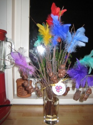 I butikken virket det som en god idé å droppe overpriset (og egentlig ikke særlig god) Twist til fordel for Bamsemums på fastelavensriset. Men da jeg kom hjem klokken 02 i natt, etter å ha drukket sterkøl med jentene, og ga meg til å knyte sjokoladebjørnene fast til grenene, lo jeg høyt for meg selv. Strangulerte Bamsemums i bjerkeskogen! Det var både komisk og litt nifst.
