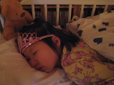 Og ännu inte äldre enn at jeg ifører meg diademet, som seg hør og bør. Det er et under at det ikke har røket i løpet av året, herjet med som det har blitt av Ulrikke. Hun ble forøvrig så høylytt misunnelig da mamma fikk "kle seg ut som prinsesse", at fotoseansen måtte gjøres hurtig unna.