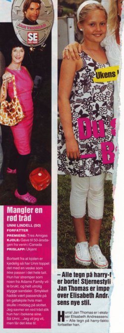 I dag morges fant Ulrikke utklippet. Blodet frøs til is i årene mine da hun kom løpende med det i hånden, mens hun ropte - Mamma, mamma! - som hun alltid gjør når hun ser bilder av meg. Vel går jeg i crocs her hjemme, og vel har jeg fått stadig mer krøller i håret det siste året. Men at jeg skulle likne på Unni Lindell! En uhyrlig tanke.