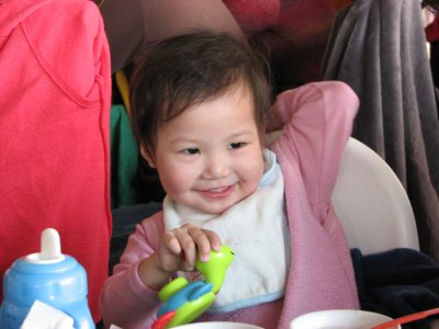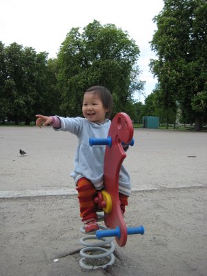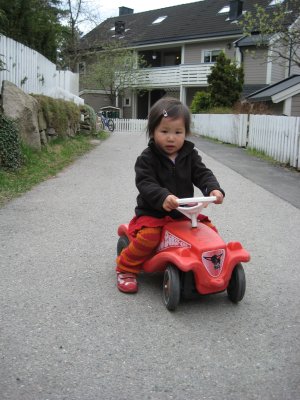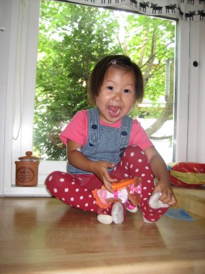 Et ekorn (eller "å-orn", som Ulrikke sier med en viss (mener jeg å høre) kinesisk aksent) er det første kosedyret hun har festet seg ved. Hun går stadig rundt med det i hånden, koser det, og det må alltid være med ut på tur.